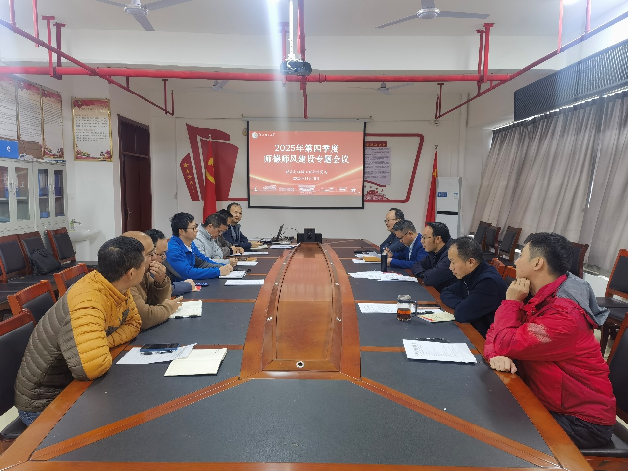 11月18日上午,学院在党员活动室A1105组织召开2025年第四季度师德师风建设专题会议。学院党委委员、师德师风建设工作领导小组成员参加了会议,会议由党委书记饶先发主持。