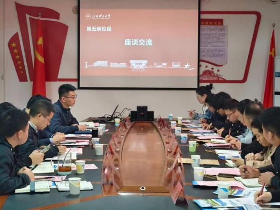座谈交流环节,与会人员聚焦重点工作,围绕样板党支部创建、学生工作、心理工作等方面进行了深入研讨。围绕样板党支部创建,大家分享建设经验、剖析现存问题,探讨优化路径;针对学生工作,就日常管理、成长引导等交换思路;在心理工作方面,热议心理健康服务体系完善与危机干预机制建设,为后续工作开展凝聚共识。
