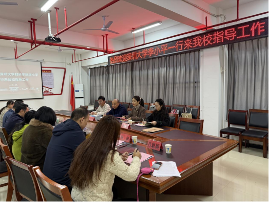 会议伊始,双方共同观看了江西理工大学校情宣传片,饶先发对深圳大学材料学院党委副书记李小平、深圳大学材料学院团委书记周艳、深圳大学材料学院团委副书记夏君怡、辅导员李书恒一行来访表示热烈欢迎,并简要介绍了学校和学院的基本情况,就我院的建设历程、组织架构、人才培养、团队建设作了详细介绍。