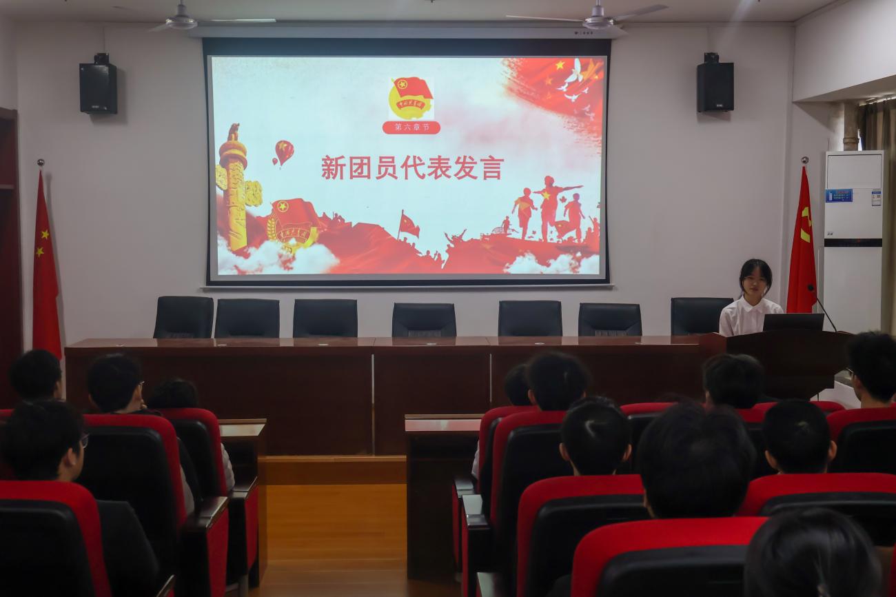在鲜艳的团旗见证下,新团员举起右拳,庄严宣誓。铿锵有力的誓言回荡在会场,彰显着青年一代坚定不移听党话、跟党走的决心。老团员代表熊鸿分享了自己的成长感悟,鼓励新团员传承红色基因,在实践中践行青春誓言。新团员代表钟雨榕在发言中表示,将以入团为新起点,严格遵守团的章程,勤奋学习、锤炼本领,努力成长为有理想、敢担当、能吃苦、肯奋斗的新时代好青年。