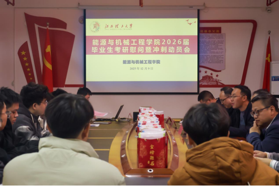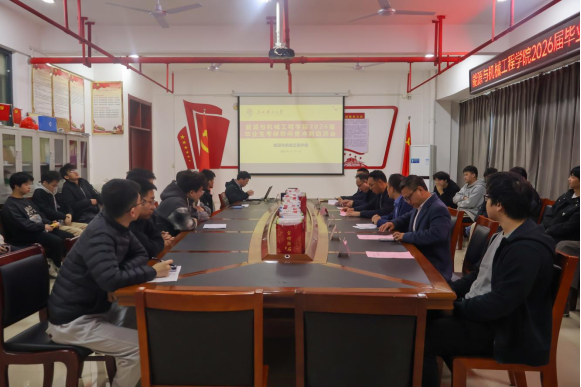 本网讯 12月9日下午,我院于综合实验大楼A1105会议室召开2026届毕业生考研慰问暨冲刺动员大会,学院党委书记饶先发,副院长李亮星、副院长许梁、学生工作负责人王国勇出席会议,为考研学子进行考前动员,发放慰问品并送上暖心祝福,毕业班辅导员郭峰、吕聪颖、就业辅导员曾亮亮及2026届考研学生30余人代表参加此次会议。本次会议由曾亮亮主持。