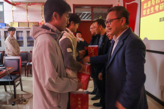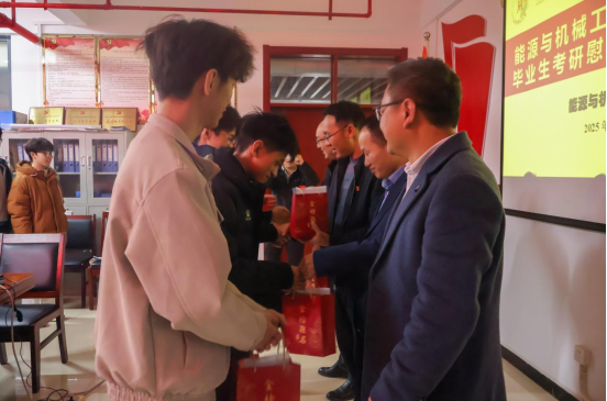 最后,与会领导为考研代表学生发放了考研礼包,发放过程中,院领导与学子们亲切攀谈,细致询问大家的复习进度、报考方向及生活需求。“最后阶段要科学规划节奏,稳扎稳打推进复习”“既要保持积极心态,更要做好防寒保暖,兼顾劳逸结合”。