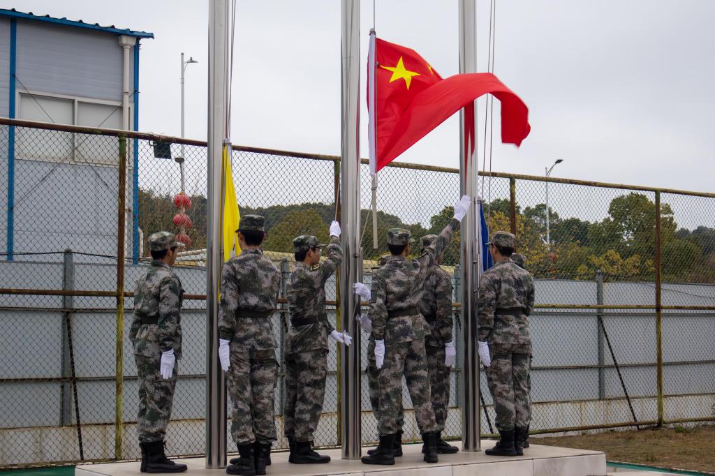 迎着新年的第一缕晨光,升旗仪式正式开始。护旗手迈着铿锵有力的步伐入场,全体师生肃立致敬。伴随着雄壮的《中华人民共和国国歌》,五星红旗冉冉升起;随后,校名旗、校徽旗依次升起,激昂的校歌响彻田径场。